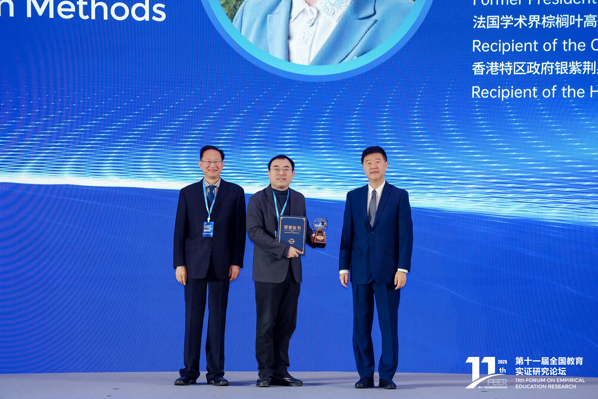 在论坛开幕式上,第二届“全球教育研究方法创新奖”(Global Awards for Innovation in Education Research Methods)颁奖典礼举行。该奖项由全国教育实证研究论坛于2024年发起,旨在表彰在全球范围内为教育研究方法学作出杰出贡献的学者,标志着中国教育学界在全球范围内设置学术标杆、引领研究方向的能力。本届评选得到了田家炳基金会的全力支持。开幕式由华东师范大学教育学部常务副主任陈霜叶教授主持。